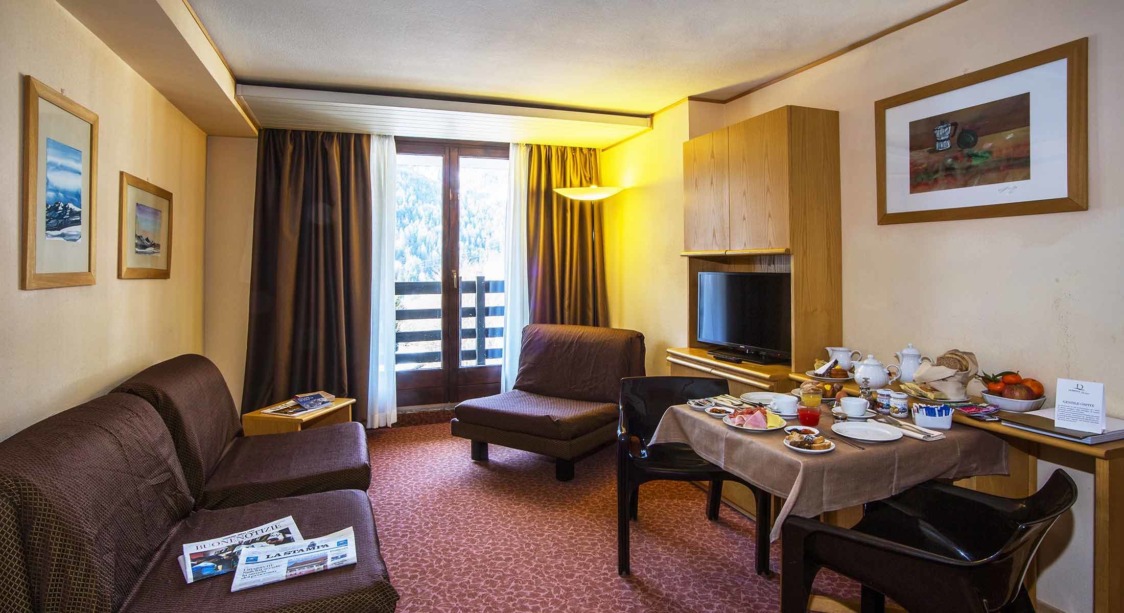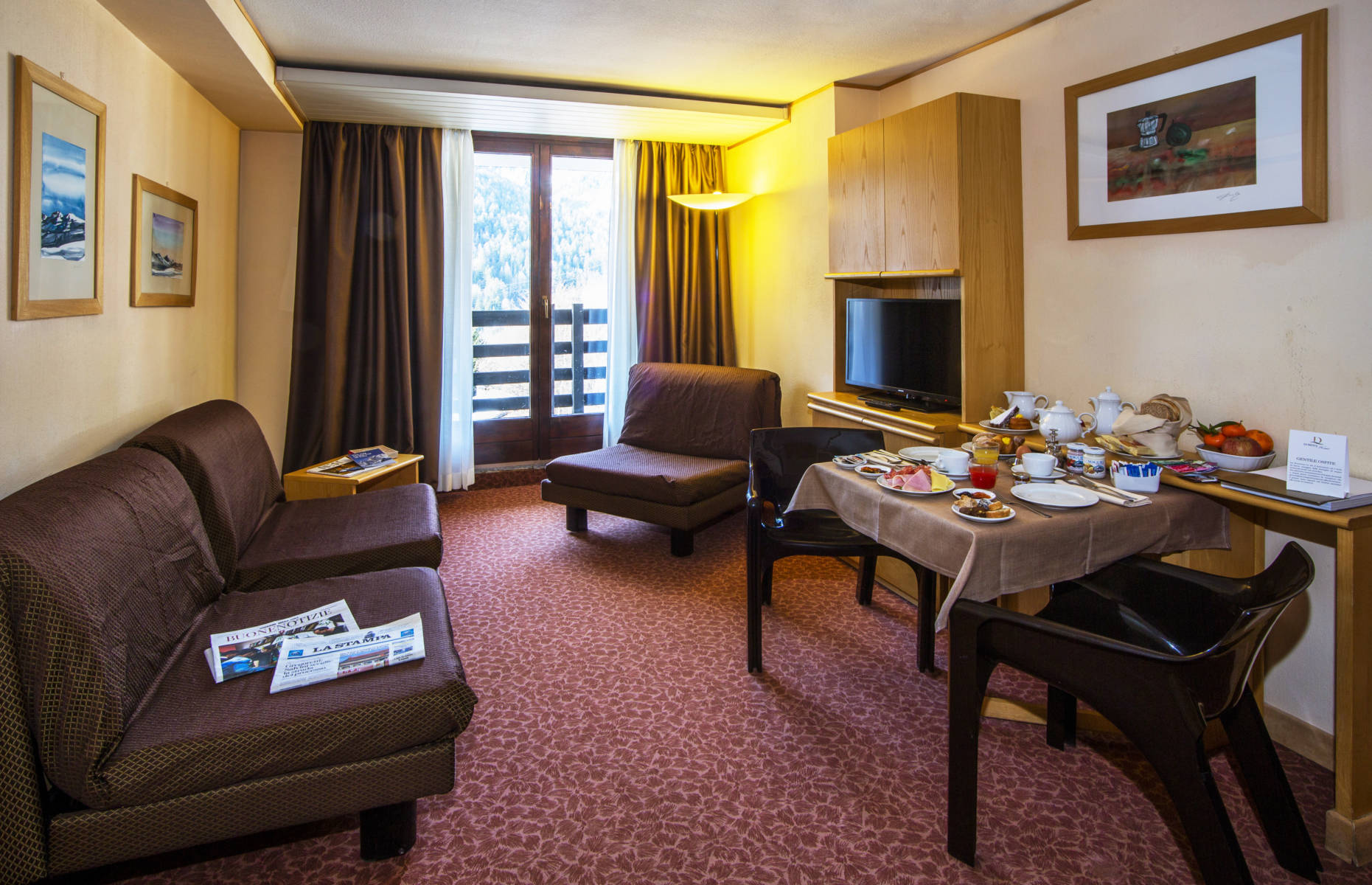 The balcony or terrace with a splendid view of the surrounding mountains offers unforgettable sensations of immensity and peace.